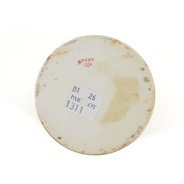 Spode box and cover- the box with glued repair to the rim. Some staining to the interior. Some wear to the gilding