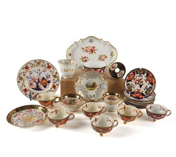 Davenport and Hammersley cups and saucers- one saucer with glued chips to rim. Some haircracks and staining overall