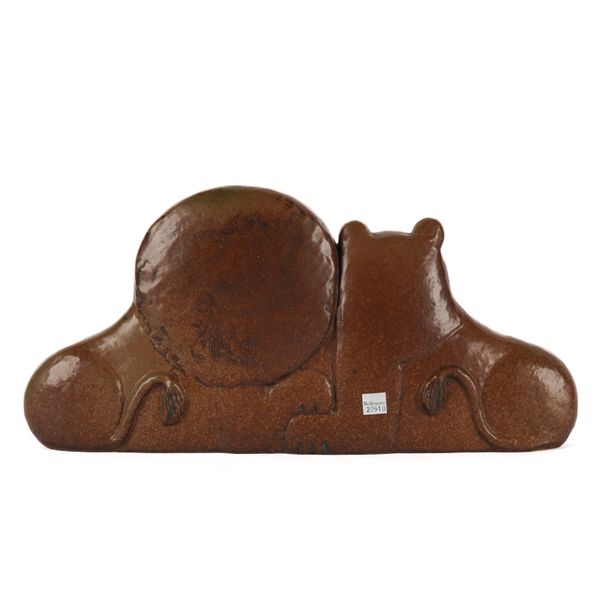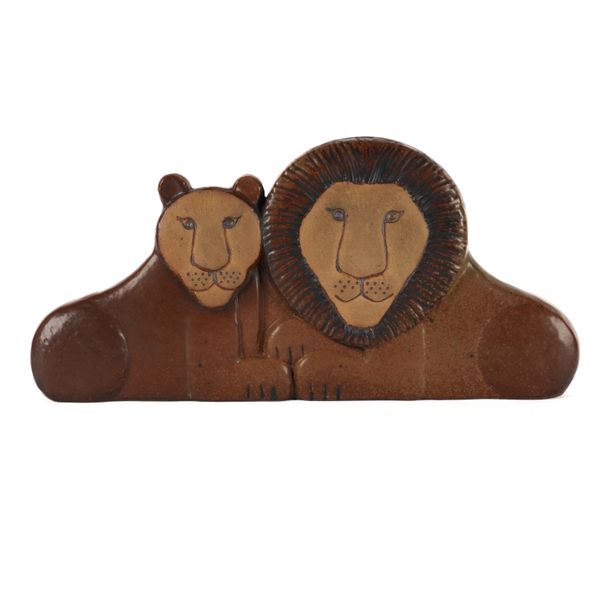 LISA LARSON ( SWEDISH 1931-2024) FOR GUSTAVSBERG. A LARGE STONEWARE GROUP OF TWO LIONS
