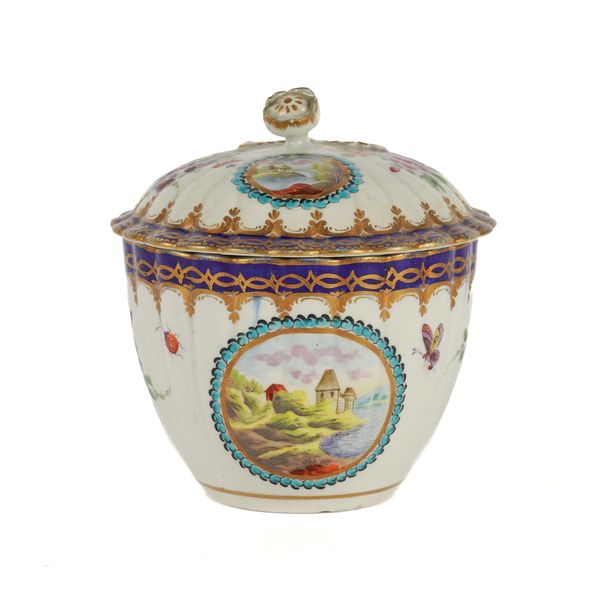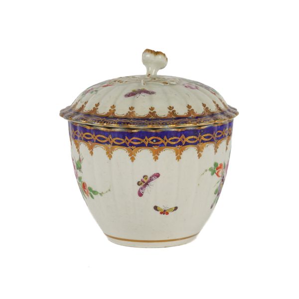 Sucrier- two nicks around the footrim. Some wear to the gilding. Some glaze specking to the interior.