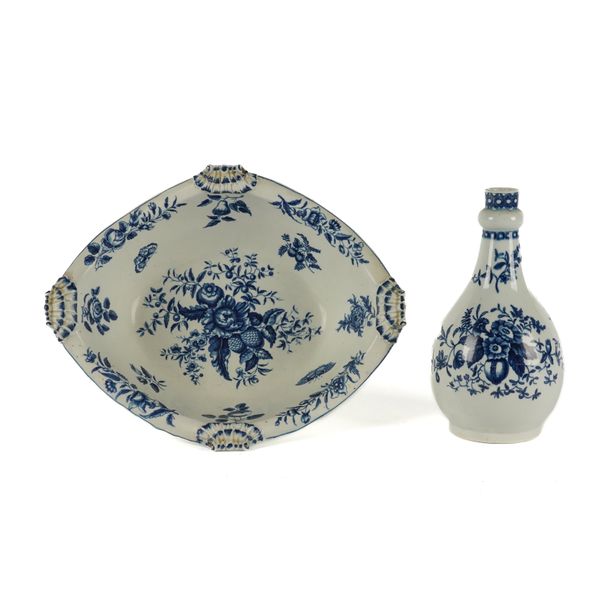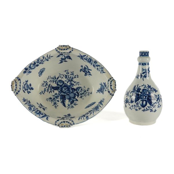 A WORCESTER BLUE AND WHITE GUGLET AND BASIN PRINTED WITH THE `PINECONE' PATTERN (2)