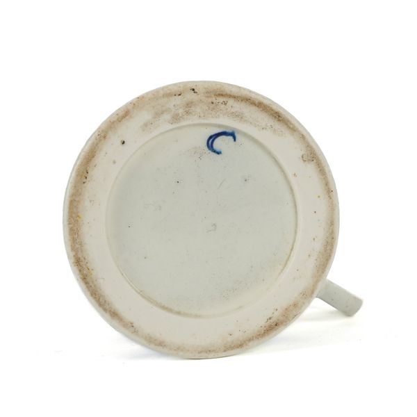 Some minor black specking to the glaze and glaze scuffing to the tip of the knop. Minor chip to underside rim of the cover