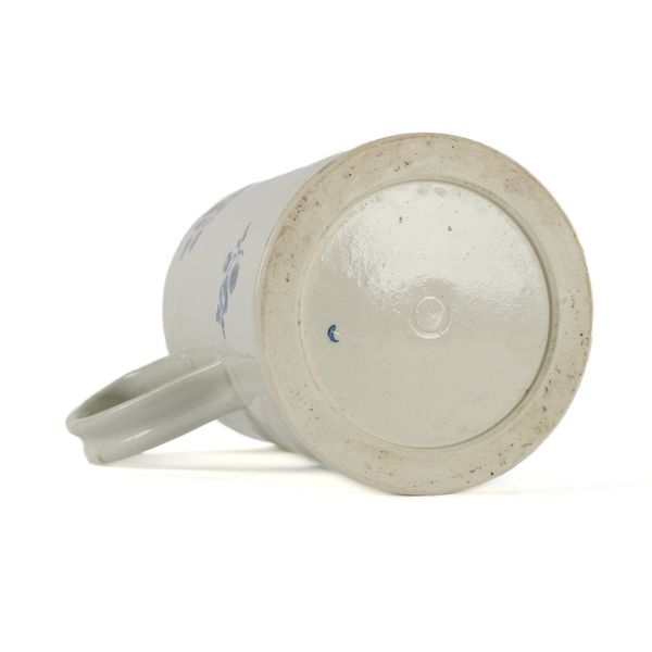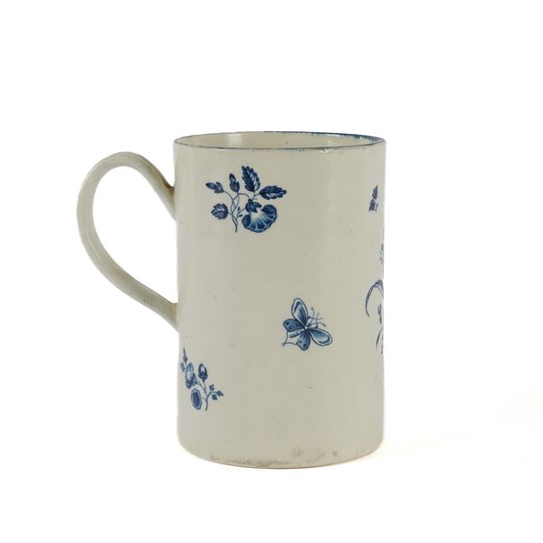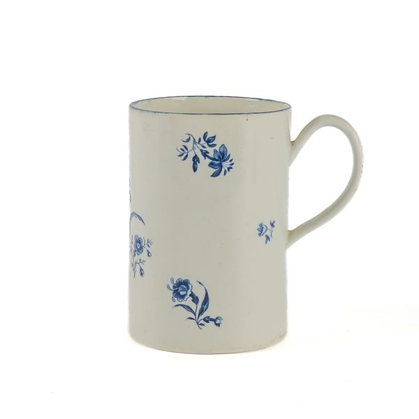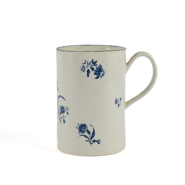A LARGE WORCESTER BLUE AND WHITE CYLINDRICAL MUG