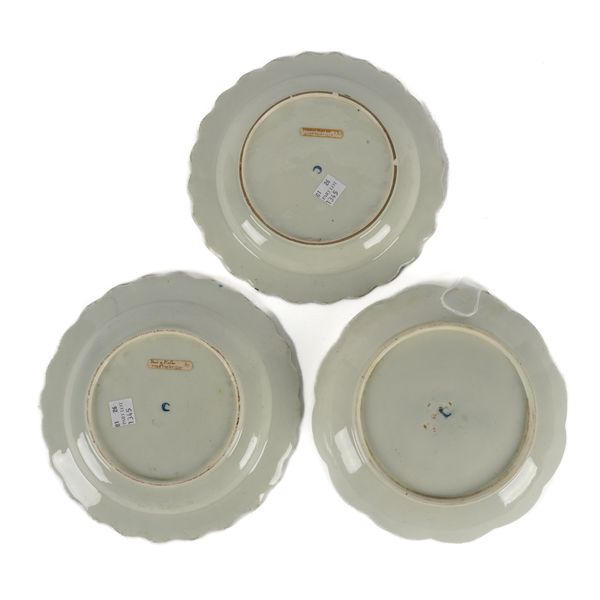 Scalloped plate- some wear to the enamels and gilding Pair of plates- each with some glazed chips around the footrim. Minor wear overall