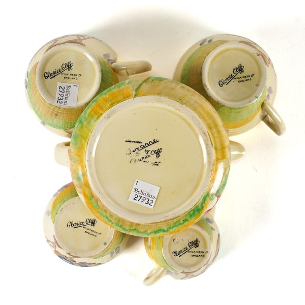 AN ART DECO CLARICE CLIFF 'VISCARIA' PATTERN PART CABARET TEA SET (9)
