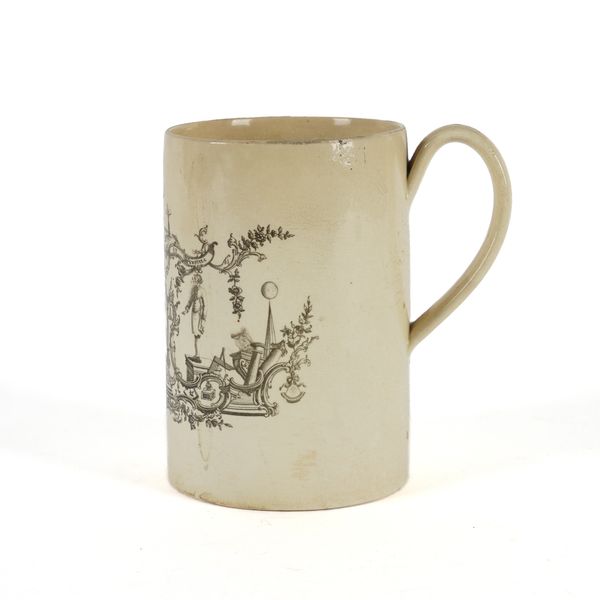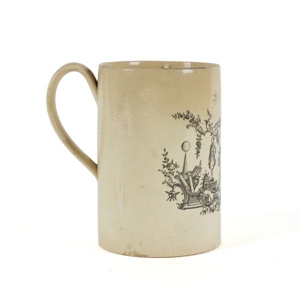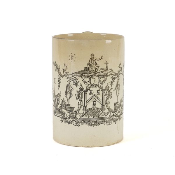 A LIVERPOOL MASONIC CREAMWARE MUG OR TANKARD