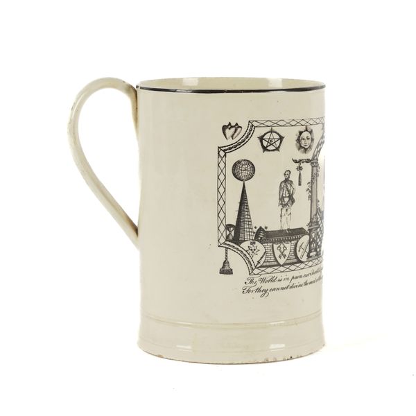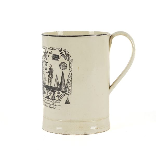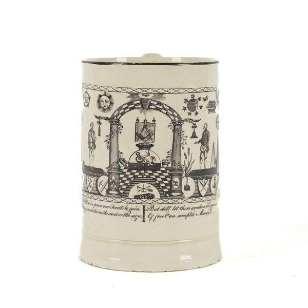 18th/19th century Possibly Tyne Pottery, printed with Masonic poem transfer, 16cm high