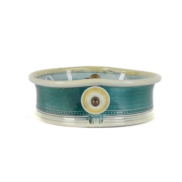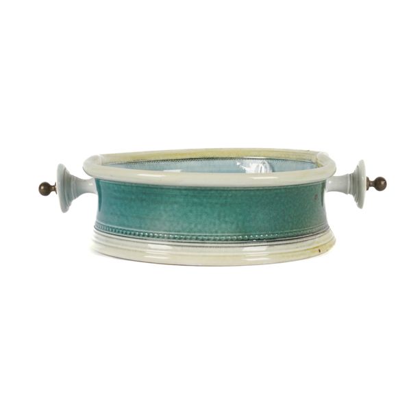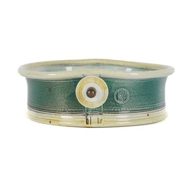 1998 Glazed in blue/green with creamware side-handles, impressed mark to centre, width 30.5cm (ARR)