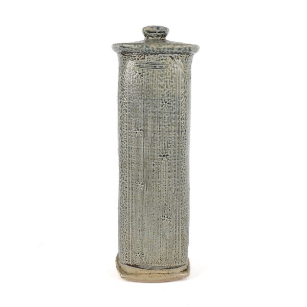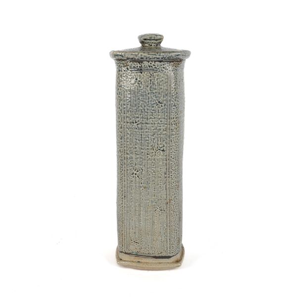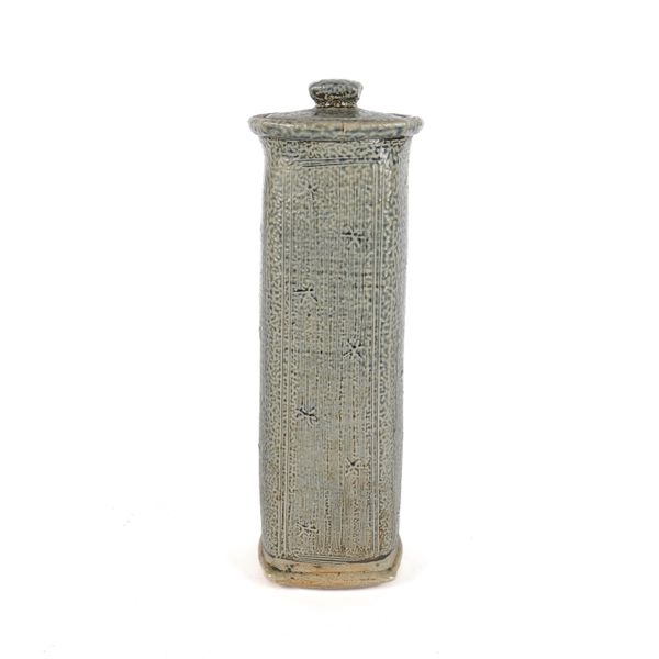 Wood-fired Of squared cylindrical form, glazed in blue and decorated with abstract star motifs, potter's marks to foot, 35cm high