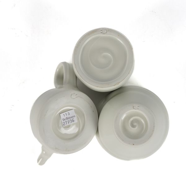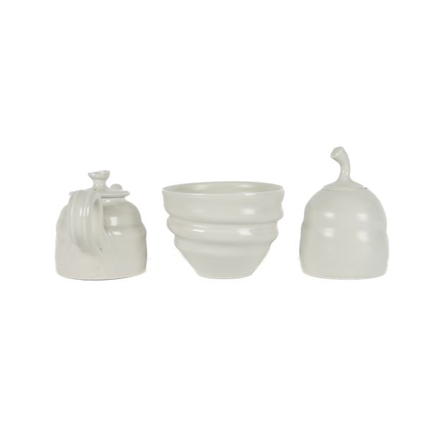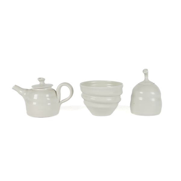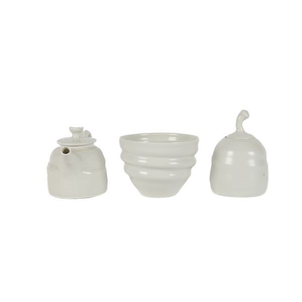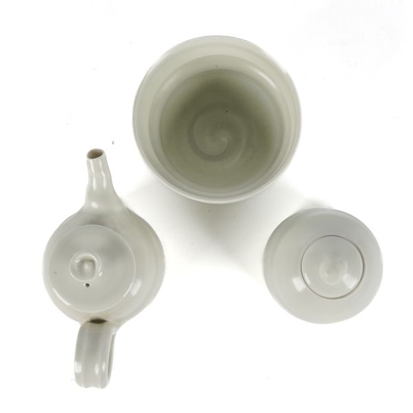 The teapot with minor fleabites to rim, minor fleabites to rim of sugar bowl, normal wear commensurate with age and use throughout including crazing