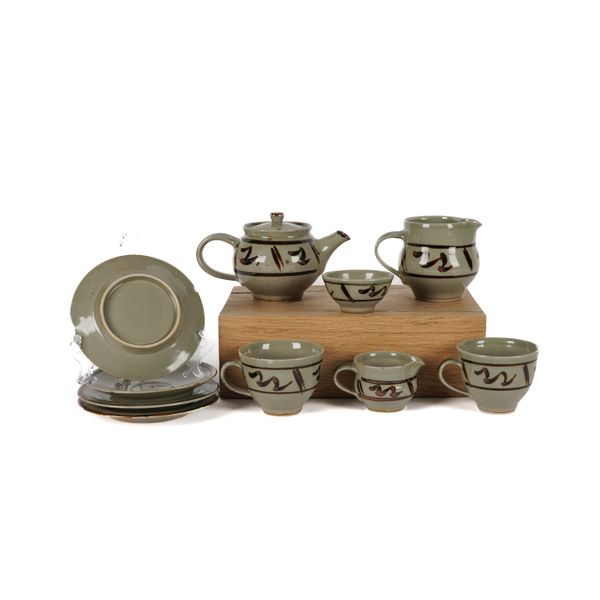 One saucer with loss to rim, one tea cup with loss to rim, one tea plate with ground glaze flaw to foot, smaller jug with loss to rim, wear commensurate with age and use throughout