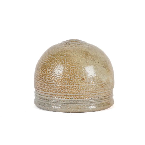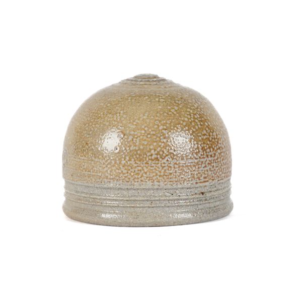 Stoneware, of beehive form, glazed in brown and blue with orange peel texture, impressed potter's mark to side, 7cm high