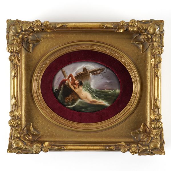 Late 19th century Painted with the `Kiss of the Wave' after a painting by Gustav Wertheimer, inscribed in pencil, `Wertheimer' to reverse, impressed `2', 13.5cm by 18cm, gilt plaster frame