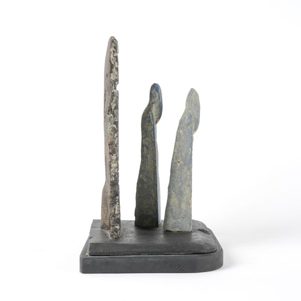 Stoneware, two figures and a wall, impressed M seal marks, painted `John Maltby' to the wood base, height including base 27cm ( ARR)