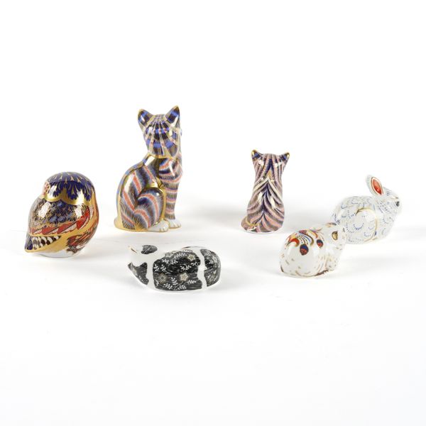 A ROYAL CROWN DERBY GOLD-STOPPER CAT PAPERWEIGHT (6)