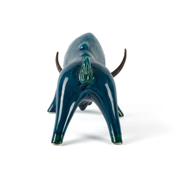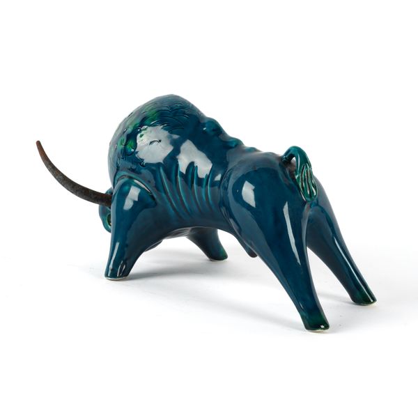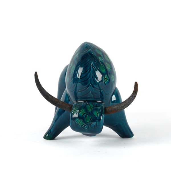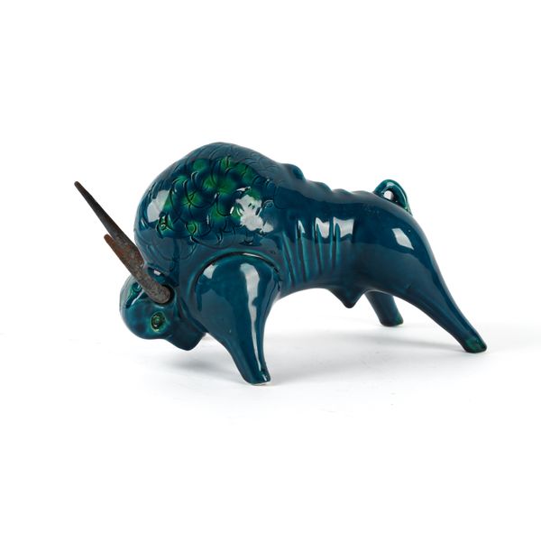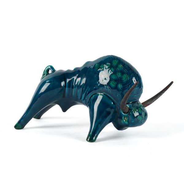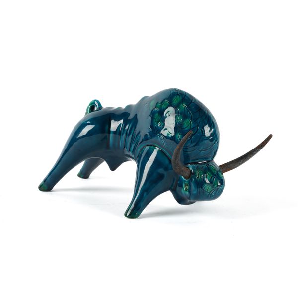 ALVINO BAGNI ( ITALIAN, 1919-2009). A STYLISED POTTERY BULL