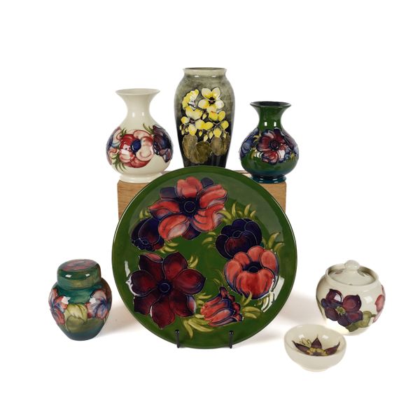 Clematis pot with two cracks to rim and star crack to interior, Hibiscus jar with crack to interior/exterior running length of body, smaller Anemone vase with glaze flaking to rim-possibly retouched, minor wear commensurate with age and use throughout including crazing etc...