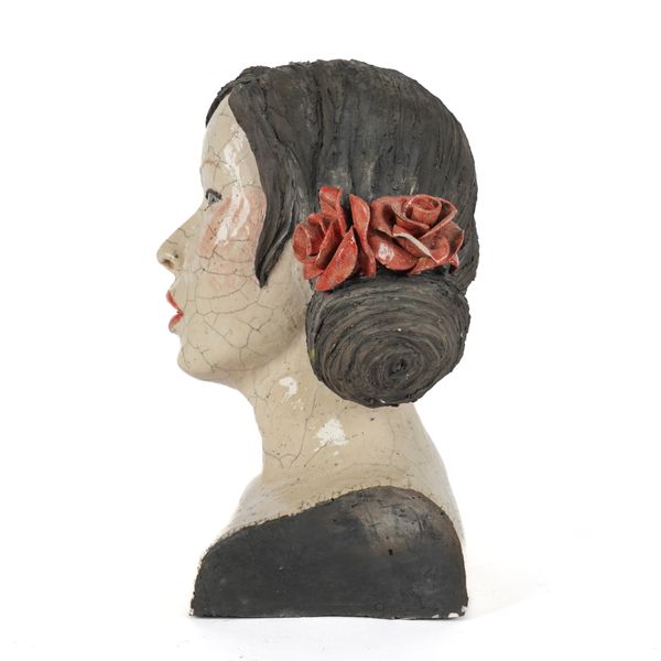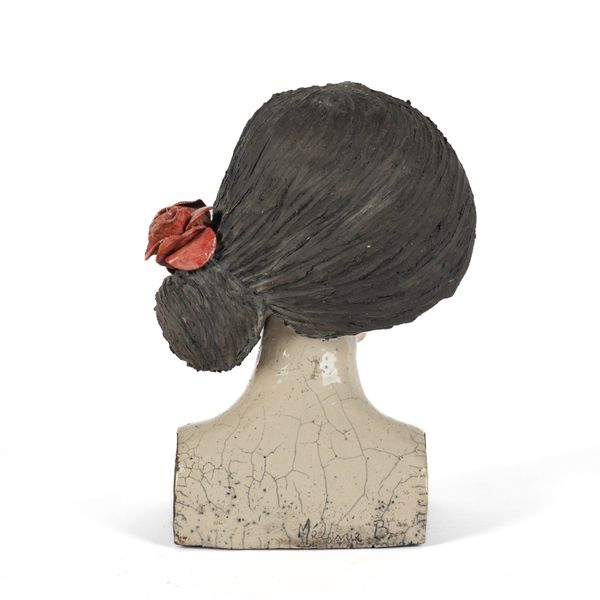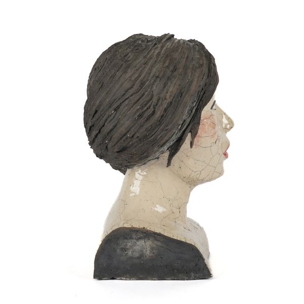 A MELANIE BOURGET (b.1972) STUDIO POTTERY BUST OF A WOMAN
