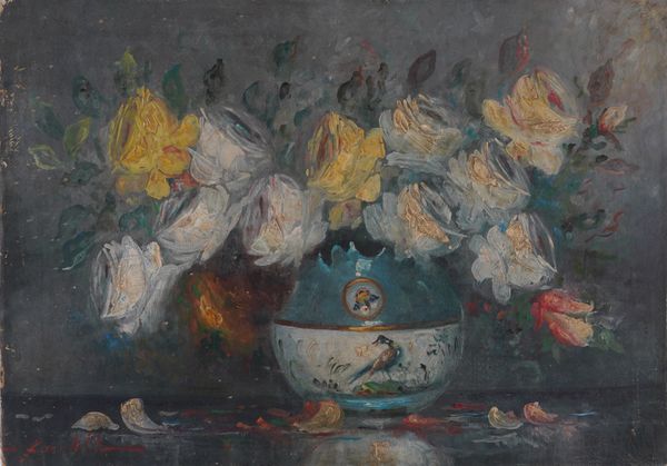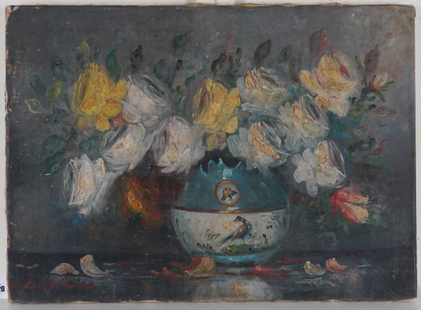 Still life with roses indistinctly signed (lower left) oil on canvas 49.5 x 70cm (unframed) Provenance Private collection, UK