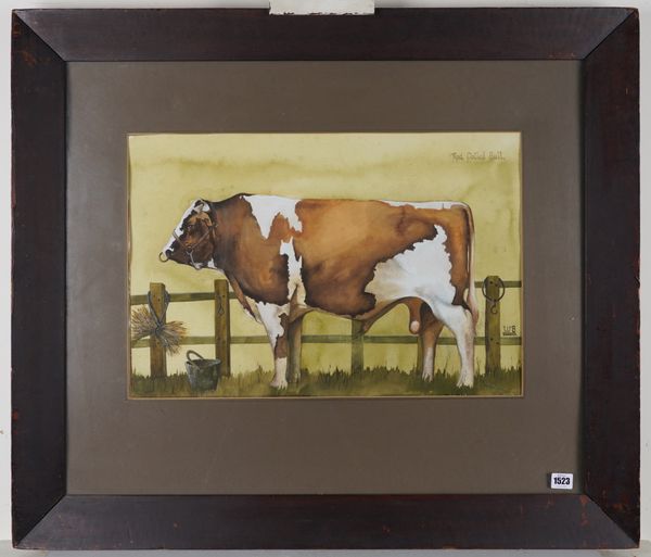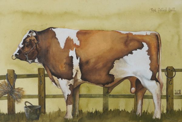 The Red Polled Bull signed with initials 'W B' and further indistinctly signed (lower right), titled (upper right) watercolour 38 x 57cm Provenance Private collection, UK