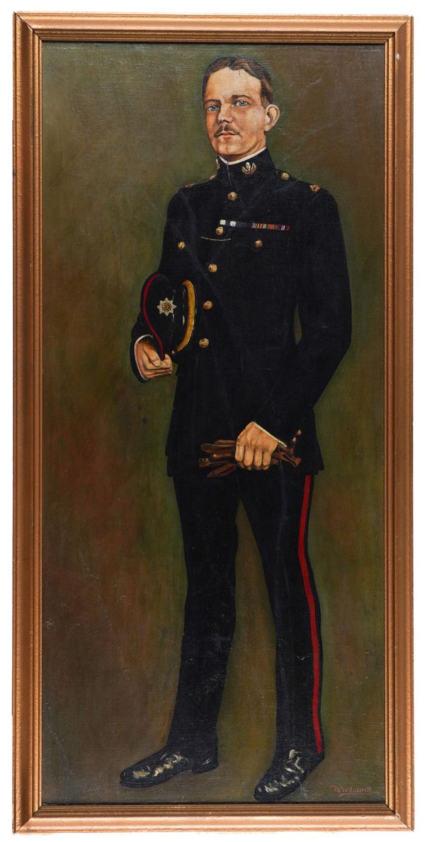 Portrait of a soldier signed 'Wieduwilt' (lower right) oil on canvas-board 100 x 45cm together with an oil on canvas of a man in military uniform, 51 x 38cm; and an oil on board of a soldier, 45.5 x 38.5cm (3)