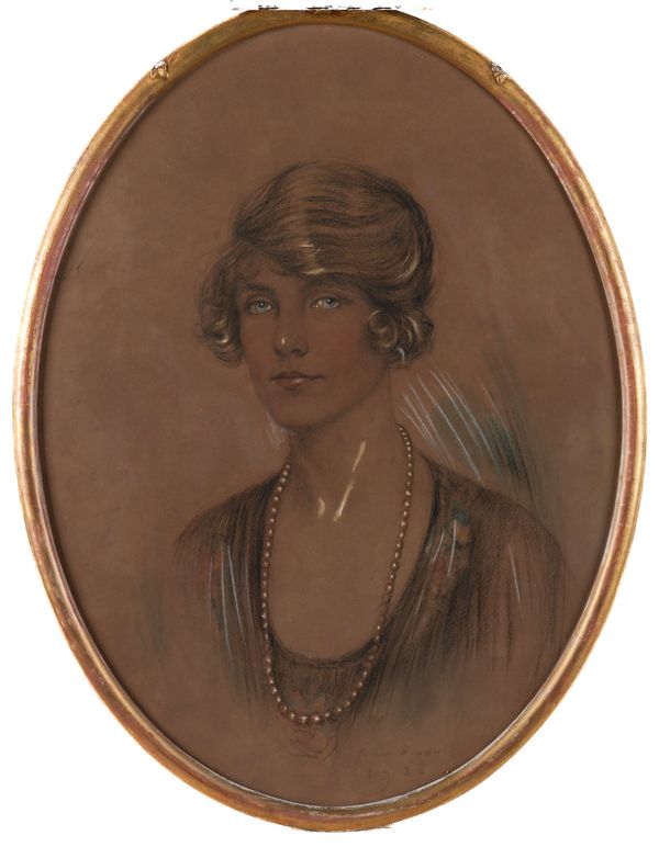 Portrait of a lady signed and dated 'Snow Gibbs 1920' (lower right) charcoal and coloured chalks 59 x 44cm, oval ARR