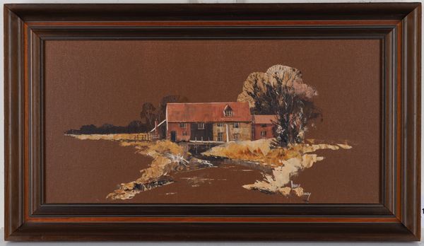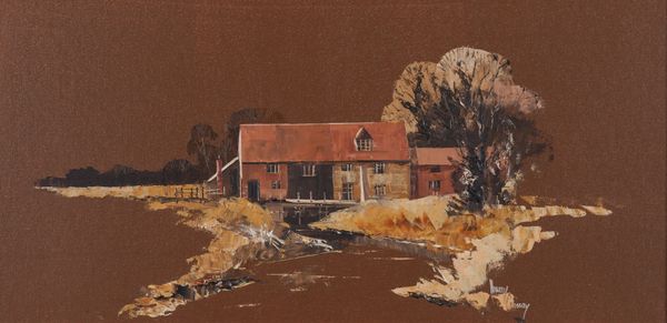 Soulbury Mill signed 'Harley Crossley' (lower right) and titled on a label (verso) oil on canvas-board 28.5 x 59cm together with an oil on board by Basil Clark, Eki's Back, signed and dated '91', 56 x 44cm (2)