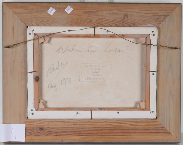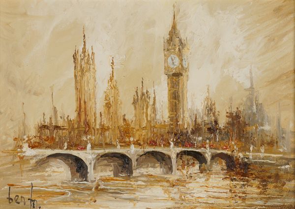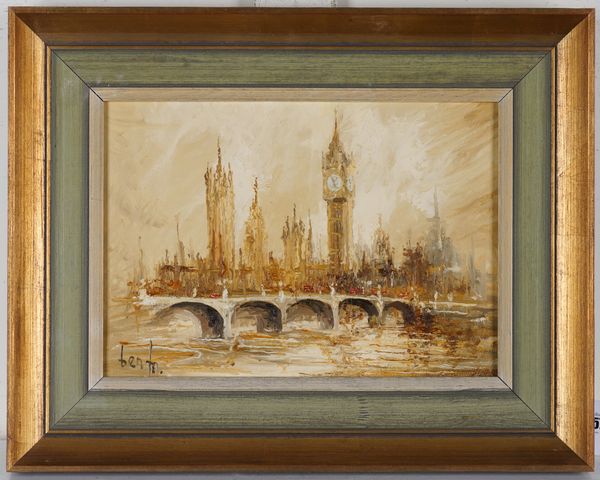 Westminster, London signed 'ben m.' (lower right) and signed, titled and dated 'aug 1977' (verso) oil one canvas 25.5 x 35.5cm ARR