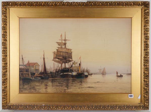 Boats in a harbour signed 'F. J. Aldridge' (lower right) watercolour 49 x 73.5cm