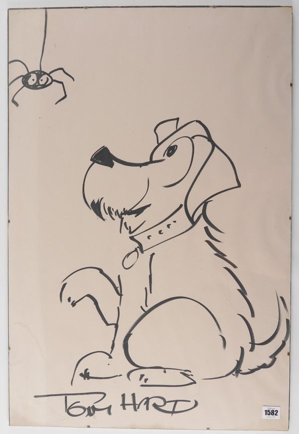 Dog and spider signed 'TONY HART' (lower left) ink 75 x 50cm (unframed) ARR