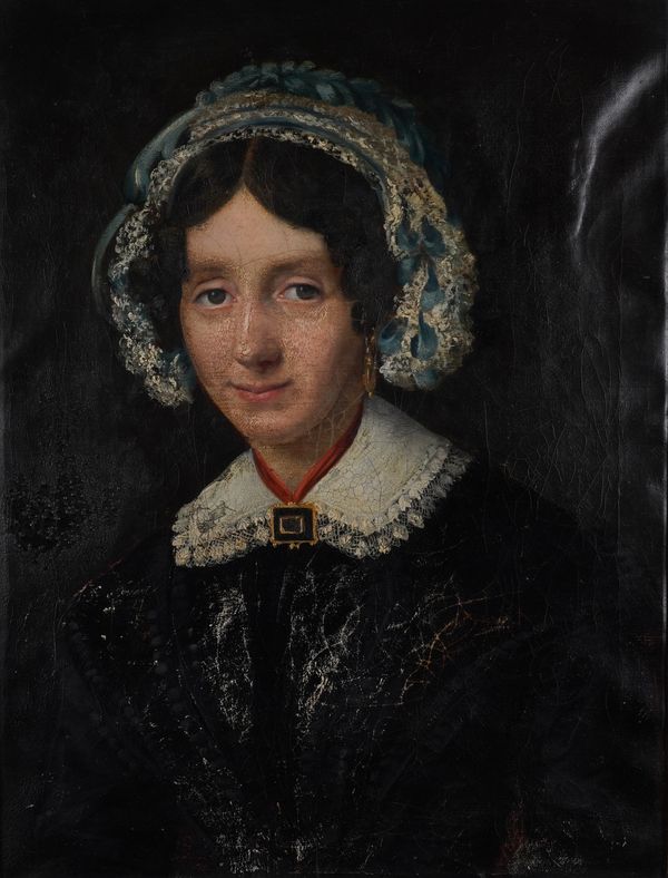 Portrait of a lady wearing a bonnet oil on canvas 66 x 50cm