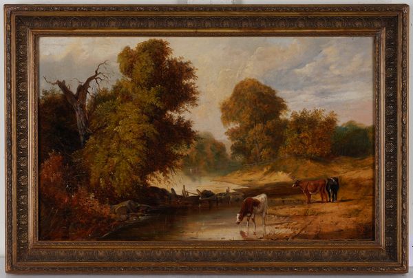 Cattle watering bears initials twice 'SC' (lower right) oil on canvas 31 x 51cm
