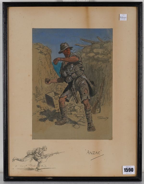 Anzac lithograph 43.5 x 33cm together with Yi- Hai! Indian Cavalry (B.E.F.), a lithograph by the same hand (2) ARR Provenance Private collection, UK
