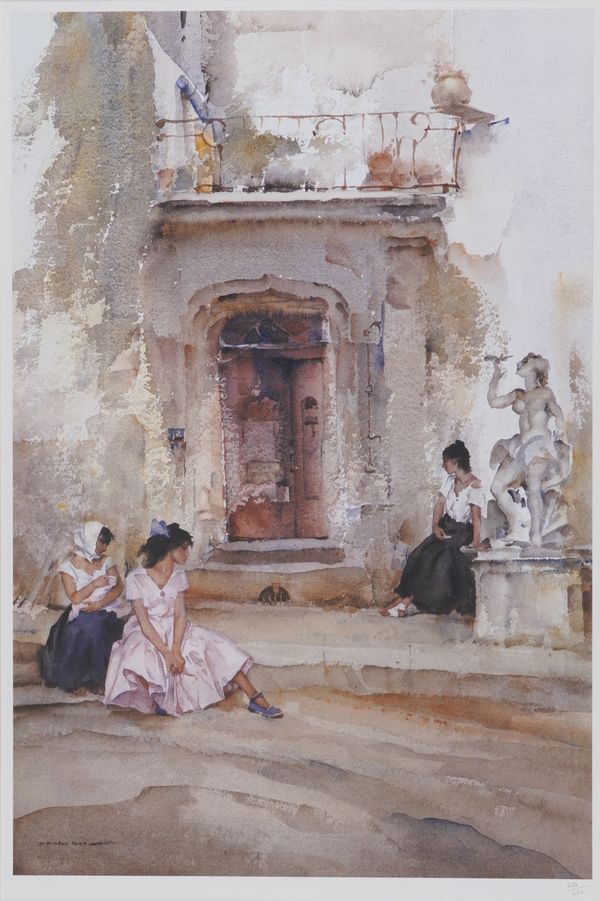 together with a print in colours After Sir William Russell Flint, Ancient Doorway, Cordes, numbered in pencil '624/650' and with 'WRF' blindstamp (in lower margin), 52.5 x 35cm