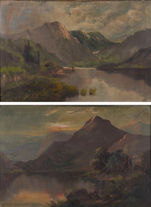 Mountainous landscape, a pair one signed and dated 'JOEL OWEN 1915' (lower right), the other signed and dated 'JOEL OWEN 1916' (lower left) oil on canvas each 50.5 x 76cm (2)