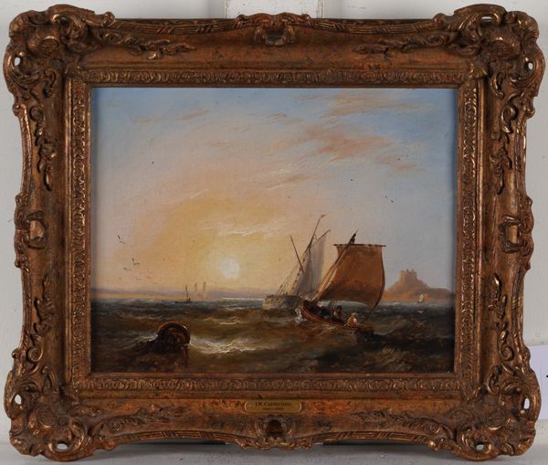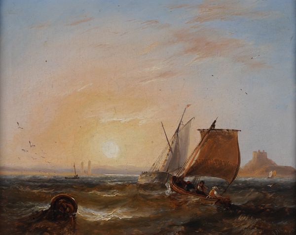 Boats off the coast, possibly St Michael's Mount beyond bears initials and date (lower right) oil on board 22.5 x 28cm