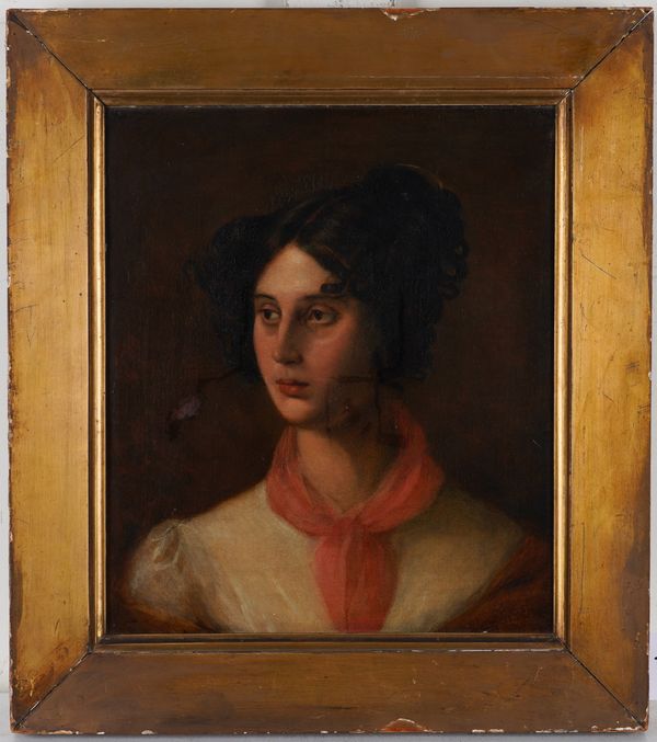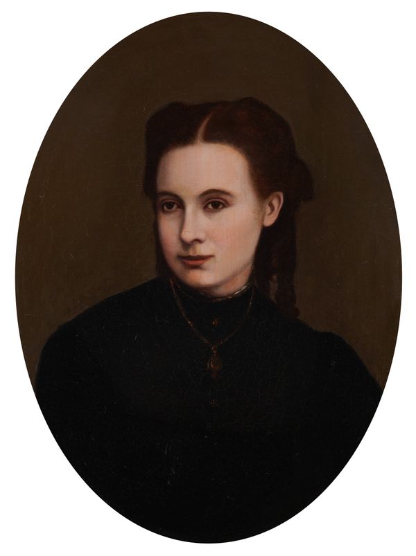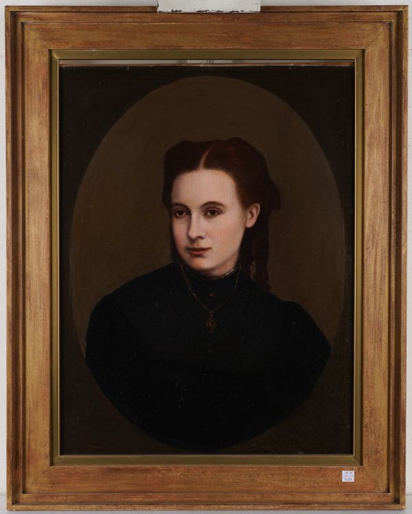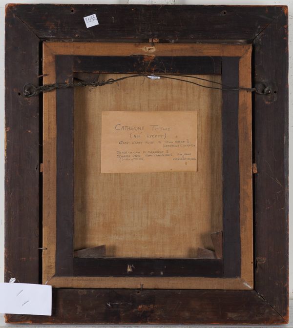 Portrait of Catherine Tittley (nee Lycett) with inscribed label (verso) oil on canvas 35.5 x 30.5cm together with a 19th century portrait of a young woman in black, oil on canvas, 60.5 x 46cm (2)