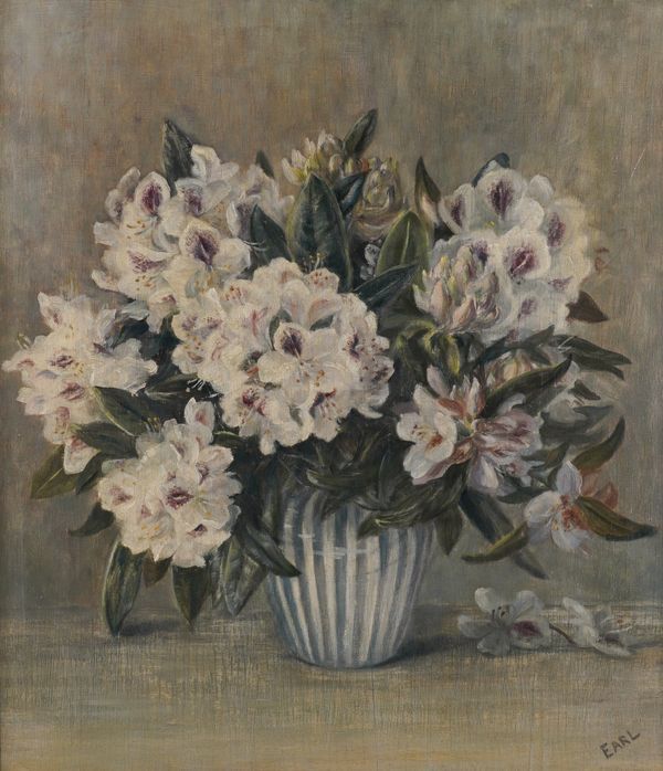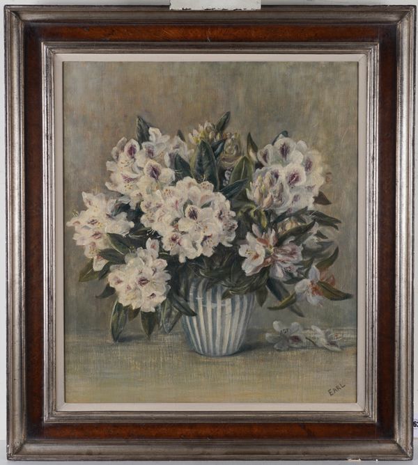 Still life of flowers in a vase signed 'EARL' (lower right) oil on board 59 x 51cm