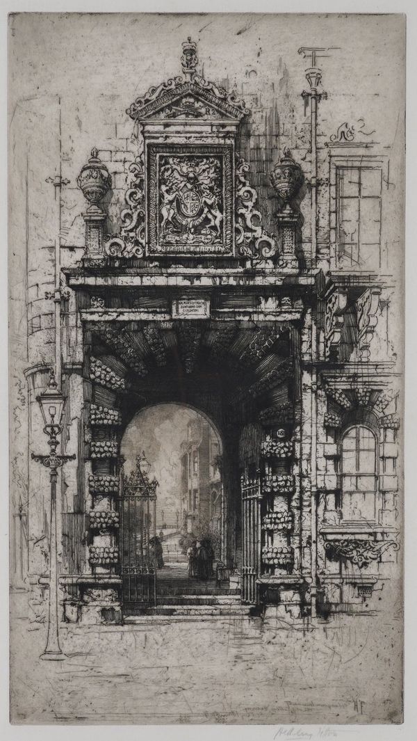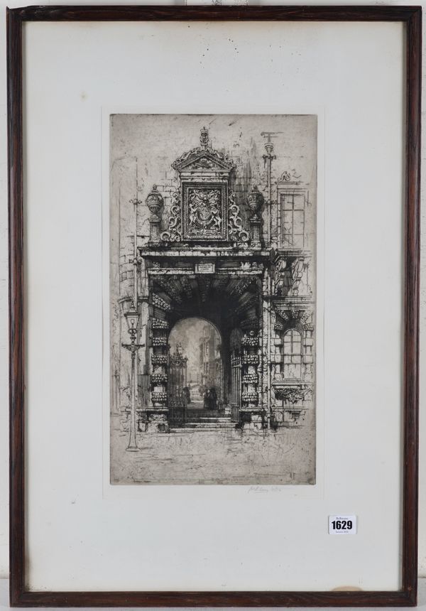 Old Glasgow College Gateway signed in pencil 'Hedley Fitton' (in lower margin) etching 42.5 x 24cm