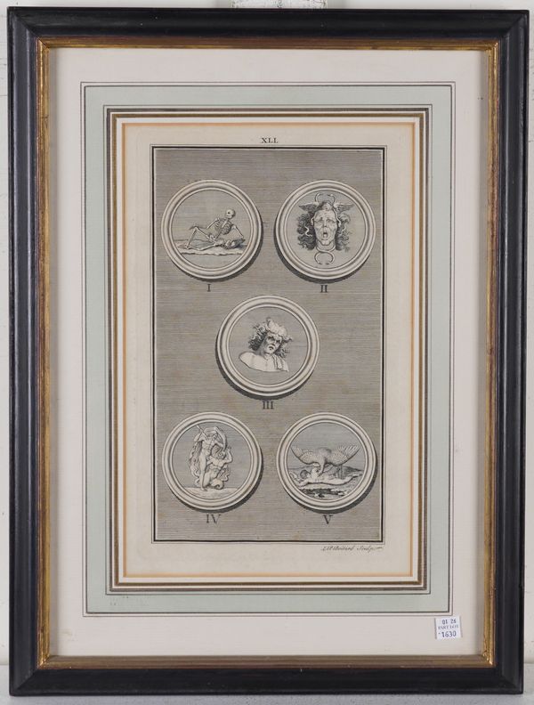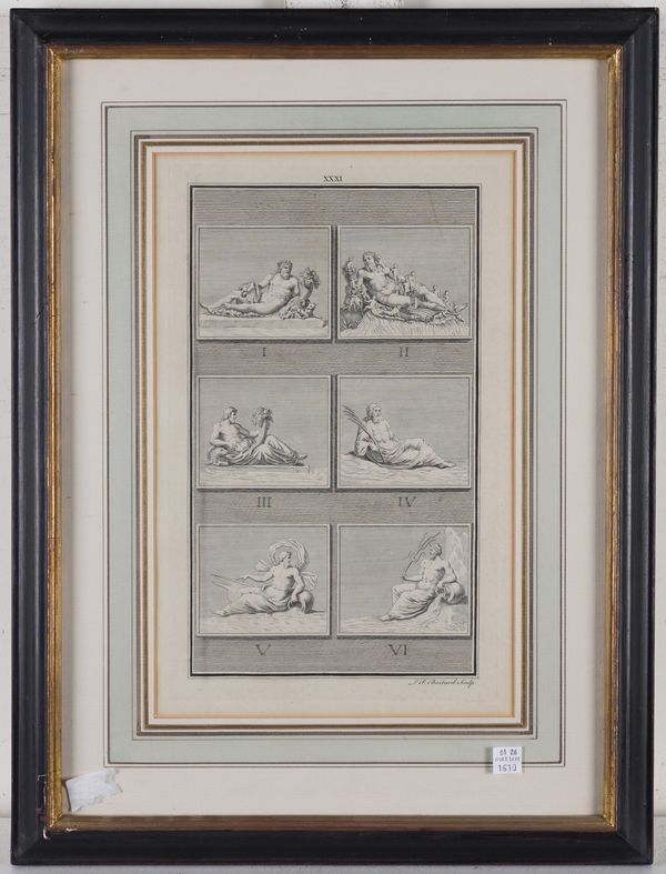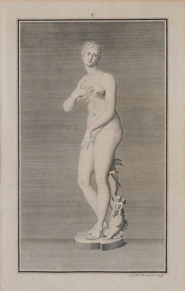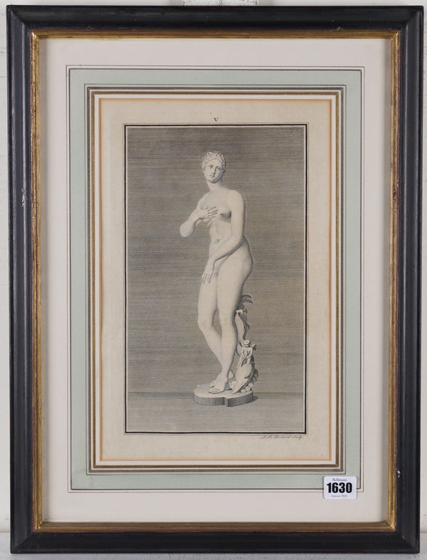 Venus de Medici engraving plate size 32.5 x 20cm together with three other engravings by the same hand, each 32.5 x 20cm (4)