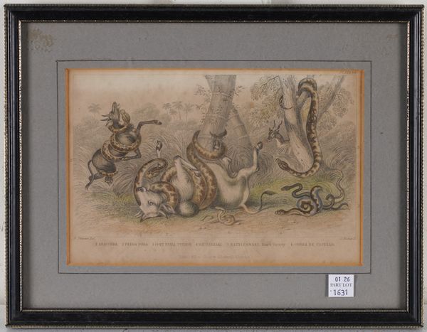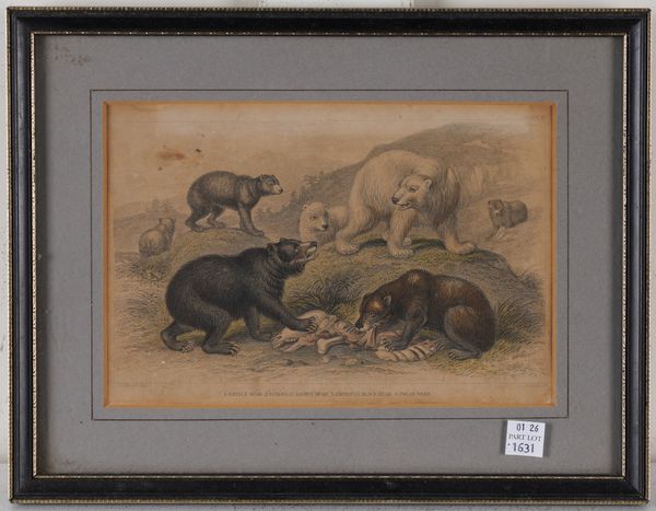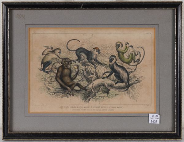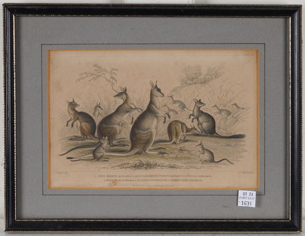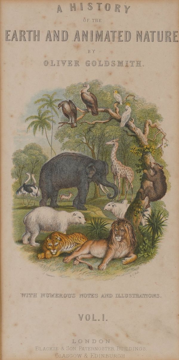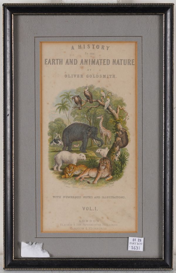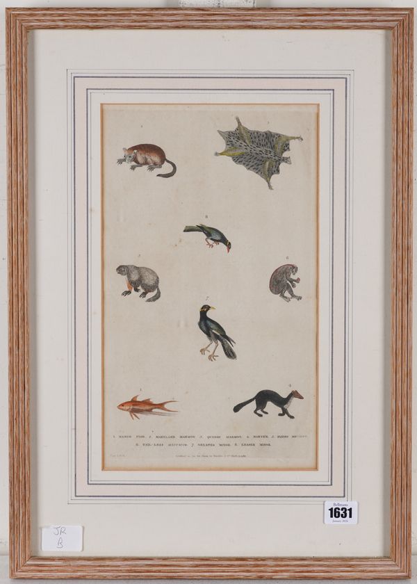 engraving published 1786 32.5 x 19cm together with the framed title page from A History of Earth and Animated Nature by Oliver Goldsmith, 22.5 x 11.5cm; and six other engravings of animals, each 14 x 21cm (8)