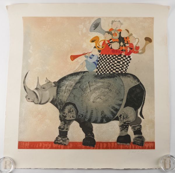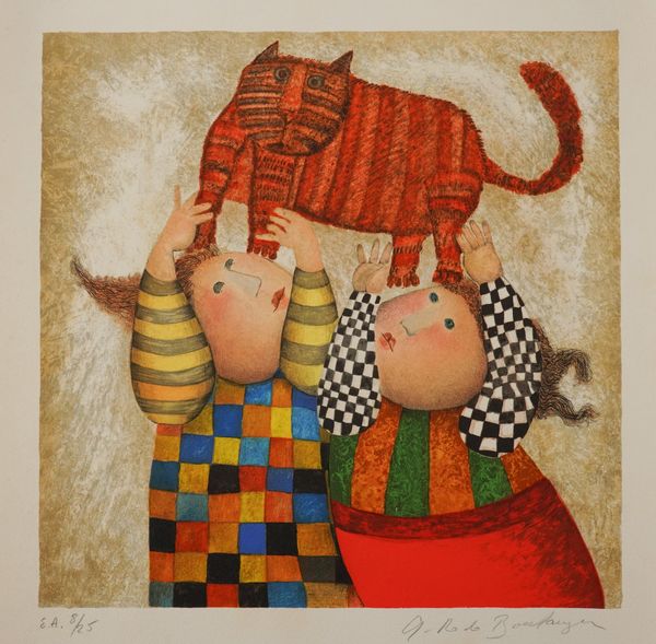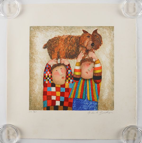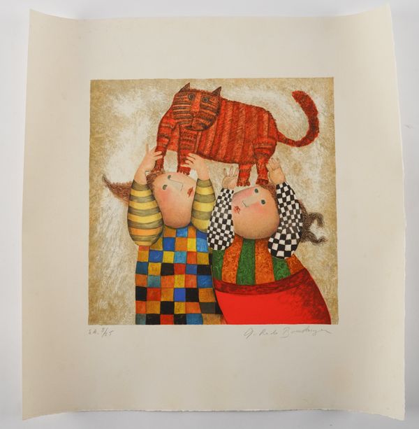together with two lithographs in colour by the same hand, Chat, signed and numbered in pencil '8/25', artist's proof, 35 x 35cm; and Chien, signed and numbered in pencil '6/25', artist's proof, 35 x 35cm, (both unframed)