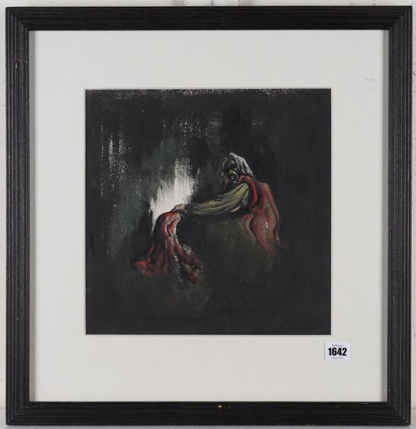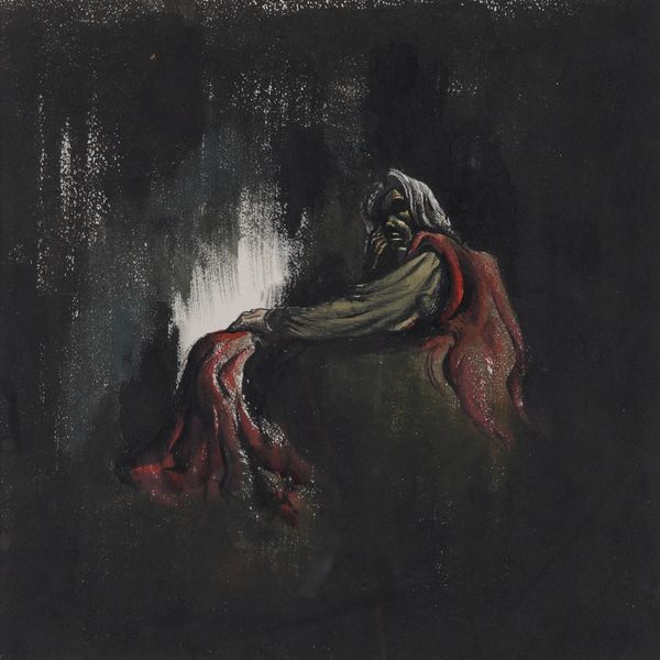 Study of a man with a red cape watercolour and bodycolour 30 x 30cm