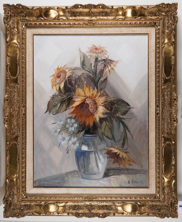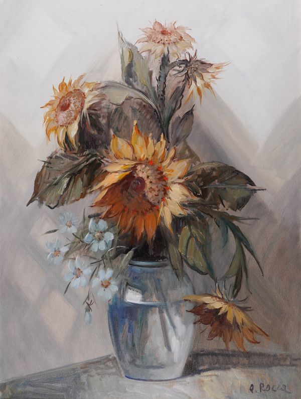 Still life of sunflowers signed '*** Rolla' (lower right) oil on canvas 80 x 60cm