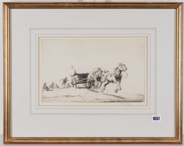 Runaway Horses signed in pencil 'George Soper' (in lower margin) etching 20 x 32.5cm