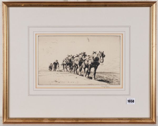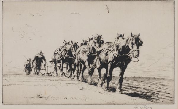 Autumn Ploughing, The Four Seasons signed in pencil 'George Soper' (in lower margin) etching 18 x 30cm
