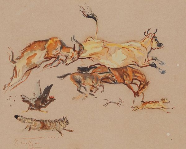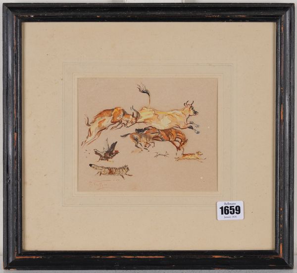 Study of animals, including a cow, goat, horses, chicken, cat, piglet and calf signed 'Michael Lyne' (lower left) watercolour and ink 13 x 16.5cm ARR