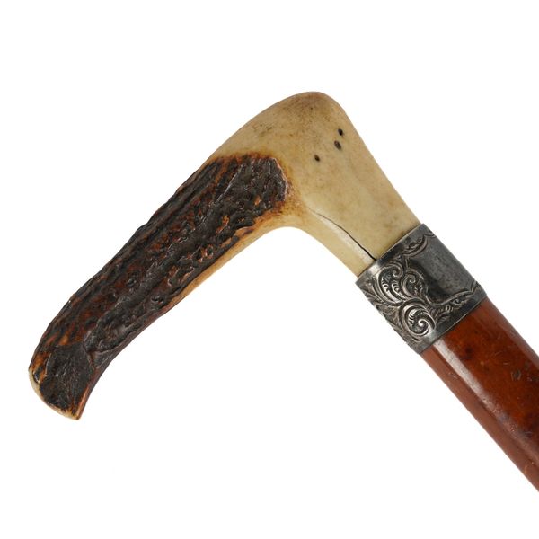 ARNOLD & SONS, LONDON (1829-1928): A VICTORIAN ANTLER HORN MOUNTED MALACCA HORSE MEASURING WALKING STICK
