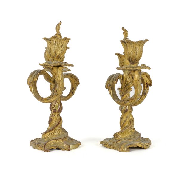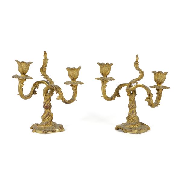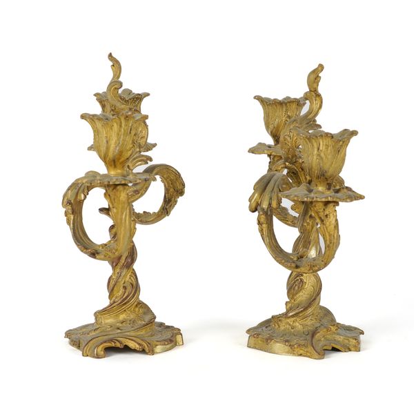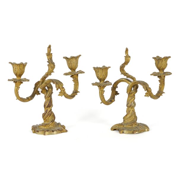 A PAIR OF LOUIS XV STYLE ROCOCO REVIVAL GILT-METAL TWIN LIGHT CANDELABRA (2)