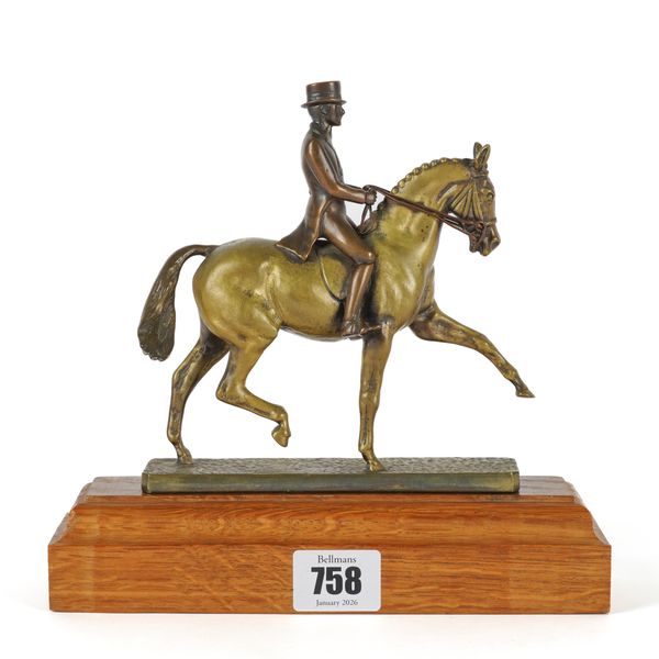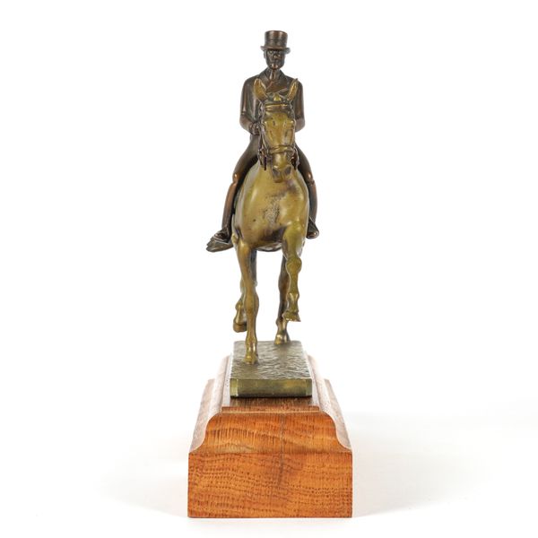 LOUIS LEJEUNE: A PATINATED BRONZE DRESSAGE RIDER AND HORSE CAR MASCOT